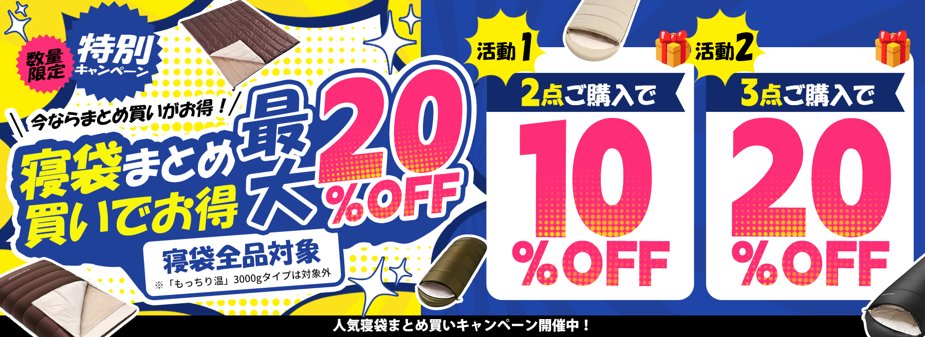 寝袋 もっちり温、人工ダウン シュラフ 封筒型、30秒收纳、-15℃~20℃耐寒【送料無料・1年保証】