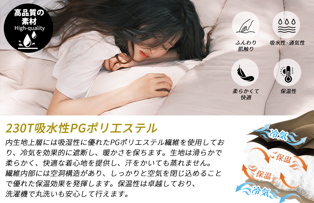★ 高品質内生地を採用。シュラフ内部上層は吸水性と通気性の高い230T素材、下層は珊瑚フリースを使用、保温性抜群!