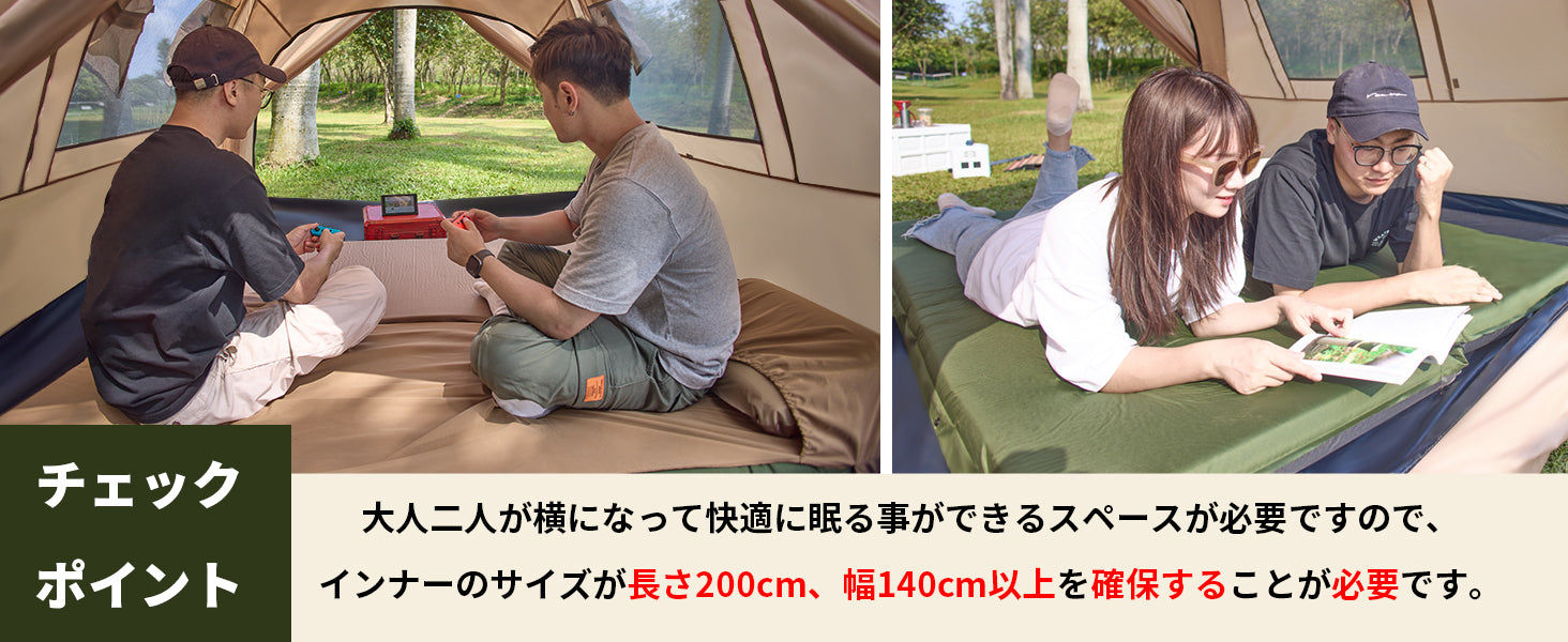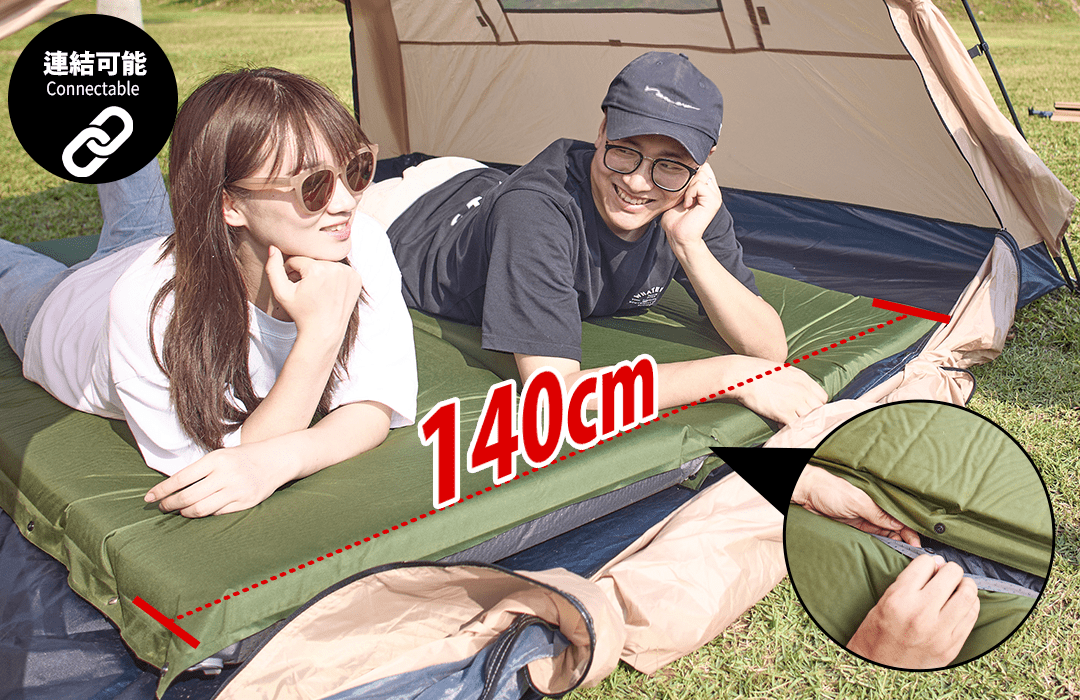 使用時のサイズ200cm×70cmはミニバンやワンボックスカーでの使用に適したサイズ感です。また、複数のマットを連結することで、横幅を広げられ、ファミリーキャンプや車中泊に最適です。