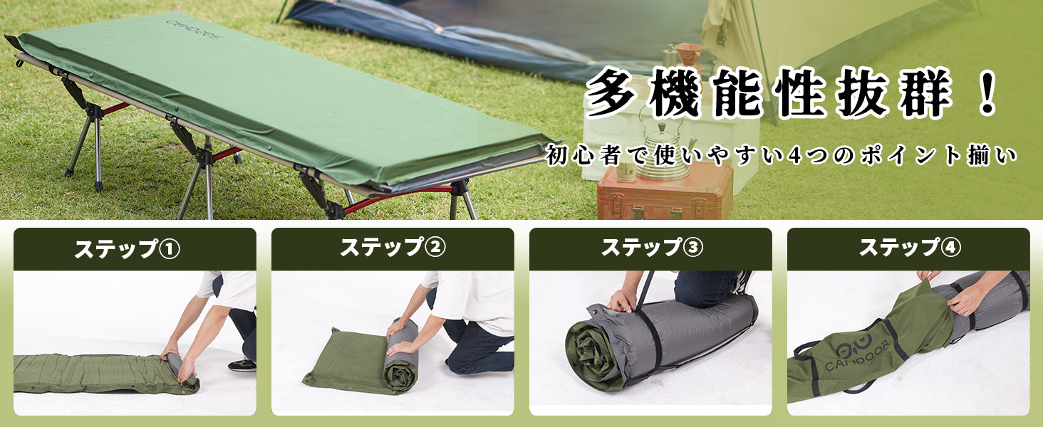 専用の収納袋が付いているので、収納スペースをとらず、持ち運びも簡単です。 アウトドアマット、キャンプマット、テントマットなど、さまざまな用途に使用されます。室内で使用しても違和感はありません。地震や災害が発生した場合の防災グッズとしてもおすすめです。