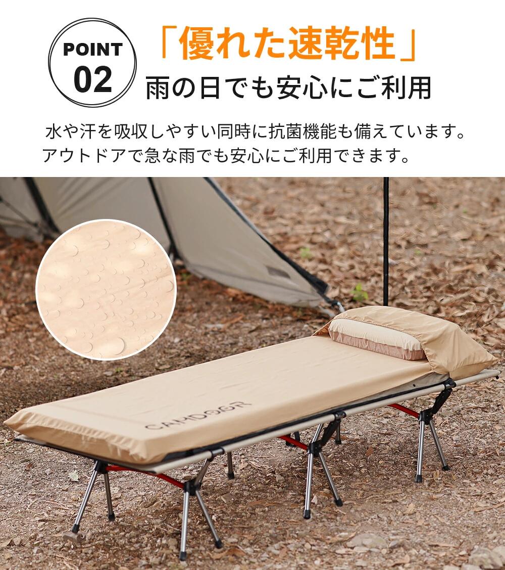 長さ196cm、幅70cmまでのシングルマットレスに対応し、アウトドアキャンプマットやエアマットレスにも使用可。