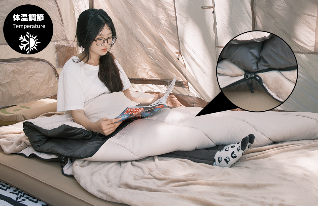 表地には優れた撥水性と耐引き裂き性、230Tポリエステルを採用し、撥水性と速乾性抜群です。まるで家の布団のようで、柔らかさと保温性も抜群。温度調節ができるので、年間を通して快適にお使いいただけます。お子さまがいるご家庭にも特におすすめです。