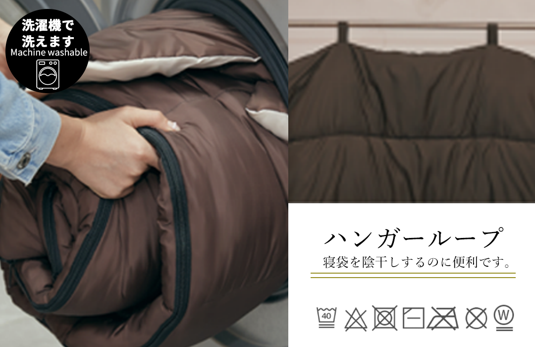 自宅で手軽に洗えるため、メンテナンスも簡単です。汗をかいても清潔さを保てます。布団の洗濯は手洗いをおすすめしますが、洗濯機を使用する際は、必ず取扱説明書で容量を確認し、手洗いコースを選んで洗濯ネットを使用してください。