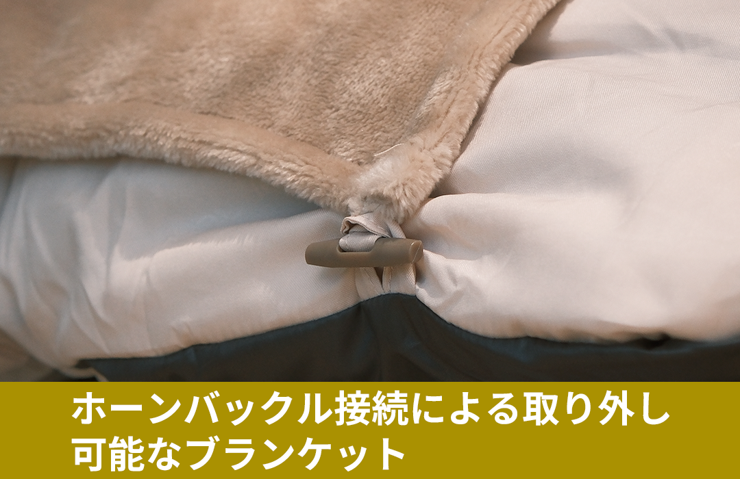 幅が広いので寝返りしやすいため、大柄な方でも圧迫感を感じずに、布団に近い使い心地で寝返りもうてますが、封筒型によくある体への密着性がない分専用ブランケットプラス仕上げております。ブランケットのみひざ掛けや肩掛けとしても使えて嬉しい!