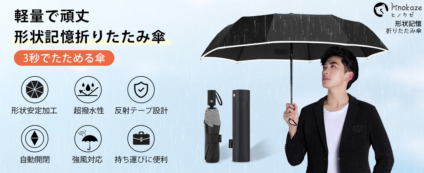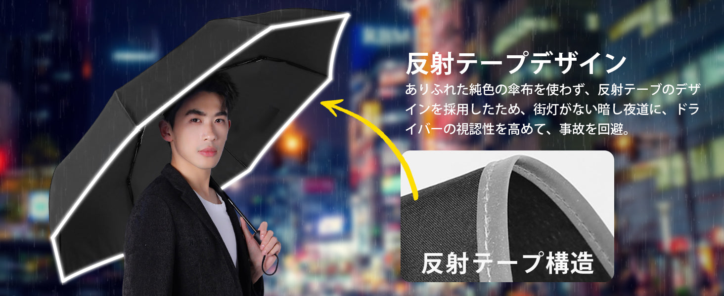 形状記憶 折りたたみ傘 自動開閉式+反射テープデザイン+風を防ぐコンパクトな傘