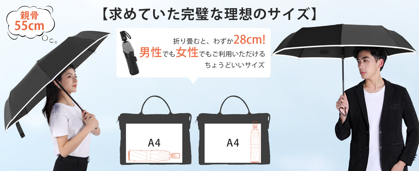 - 軽量折りたたみ傘・ゆとりのある大きめサイズで快適さをプラス