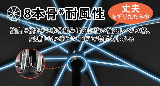 頑丈で強度があるアルミニウム骨使用で丈夫な8本骨