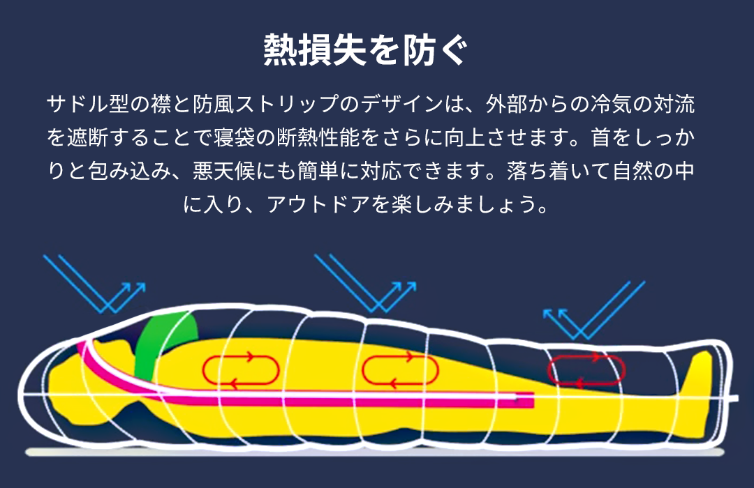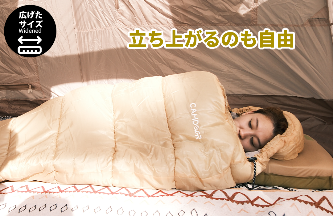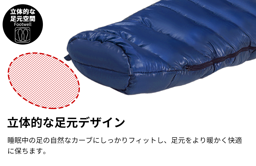 マミー型(人形型)は主に冬に使用され、最も寝心地が良いと言われています。 寝袋には体にフィットするミイラ型と角型封筒型の2種類があります。 冬に使用する場合は、密着性が高く保温性の高いマミータイプがおすすめです。
