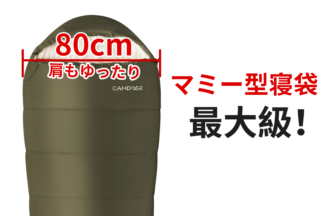 肩幅がゆったり80cmで、マミー型でありながら、寝返りを打っても圧迫感を感じることなく、快適さを保っています。