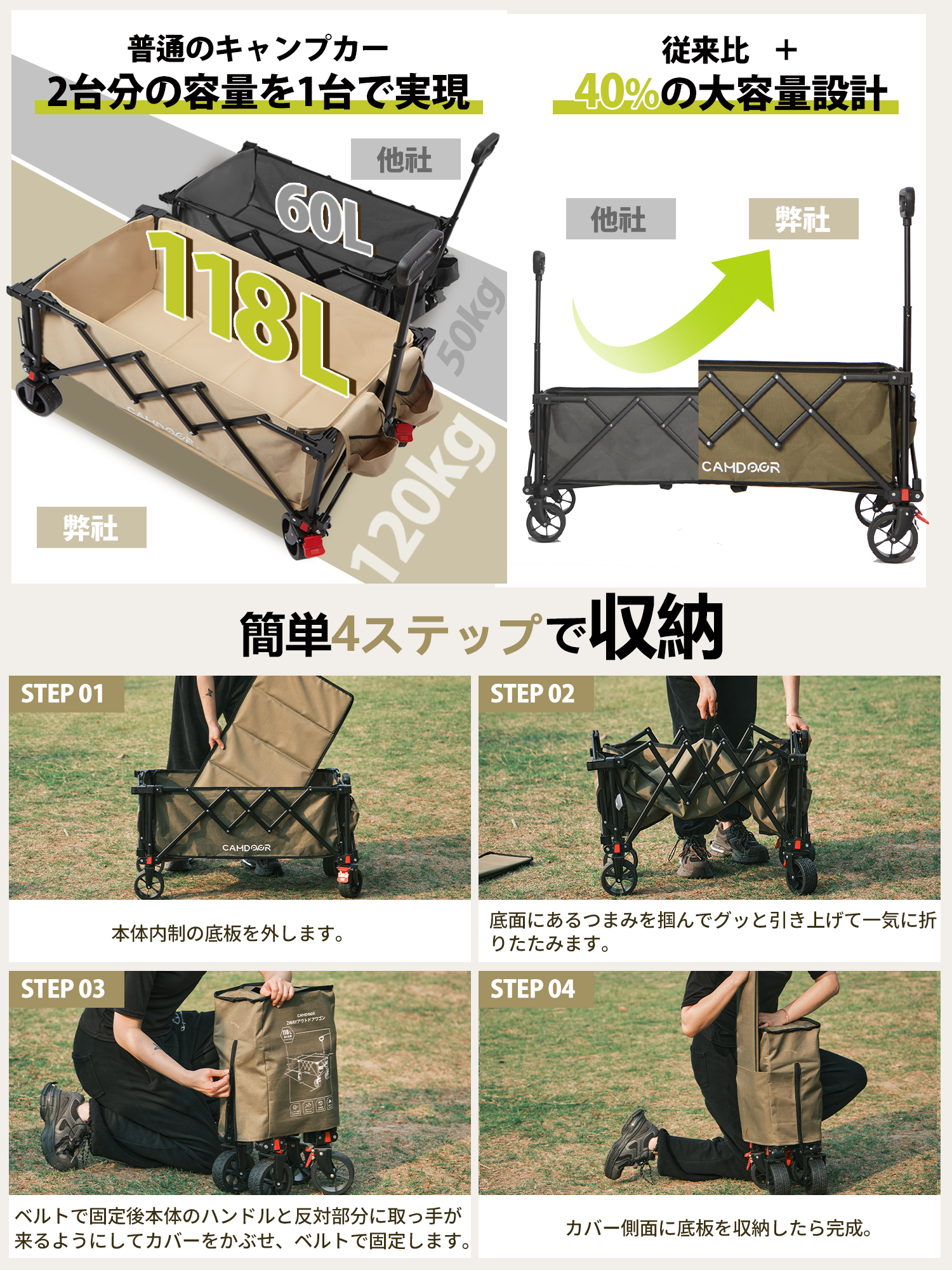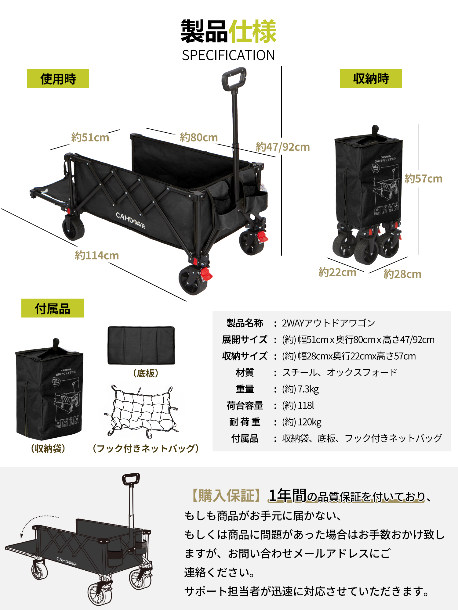 キャリーカート アウトドアワゴン 折り畳み式キャンプカート【送料無料・1年保証】