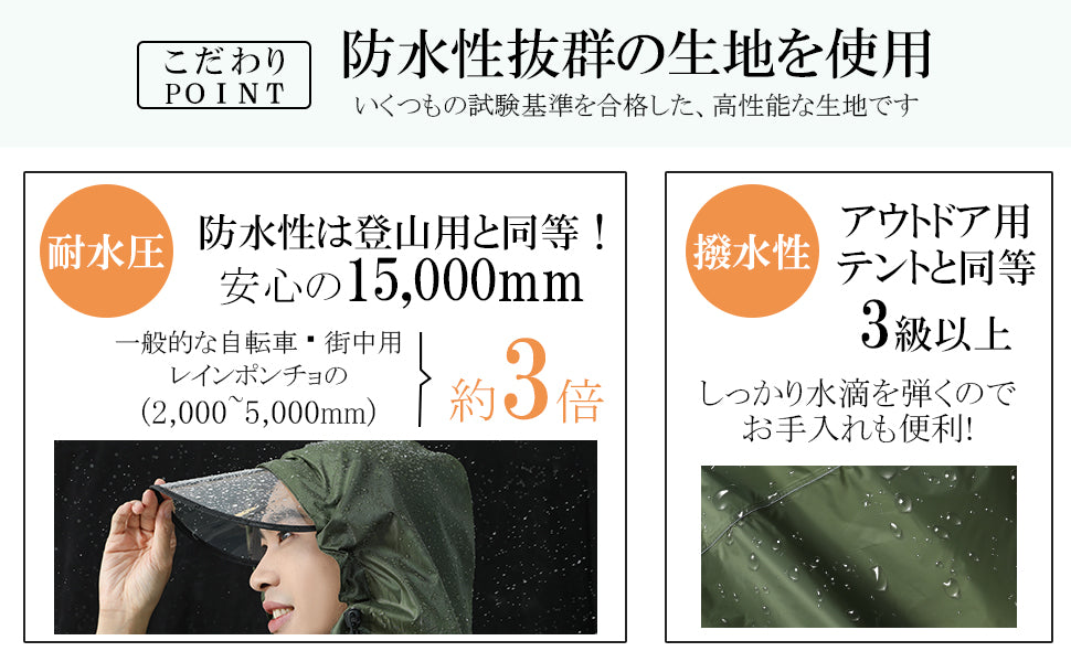 耐水圧は一般的な傘のなんと30倍以上の15,000mm!