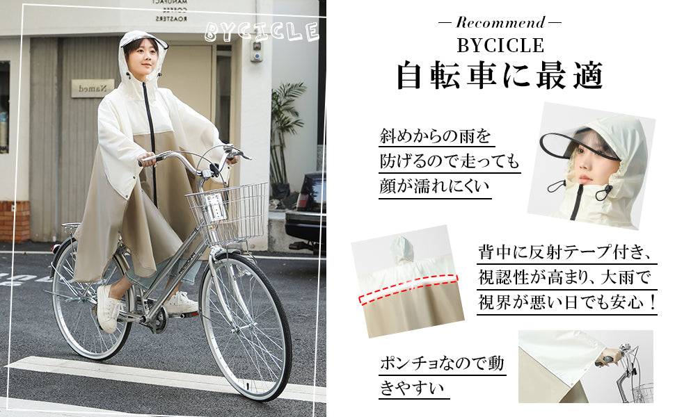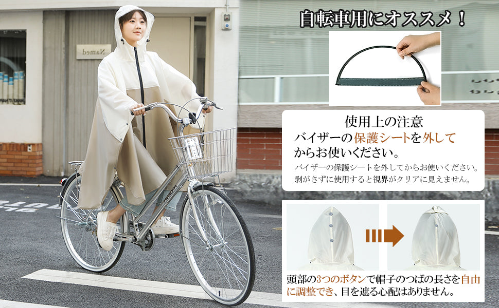 レインコート 自転車 取り外し可能なフード・超軽量・20秒収納