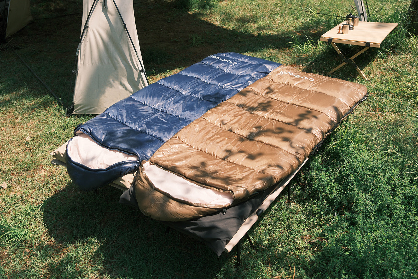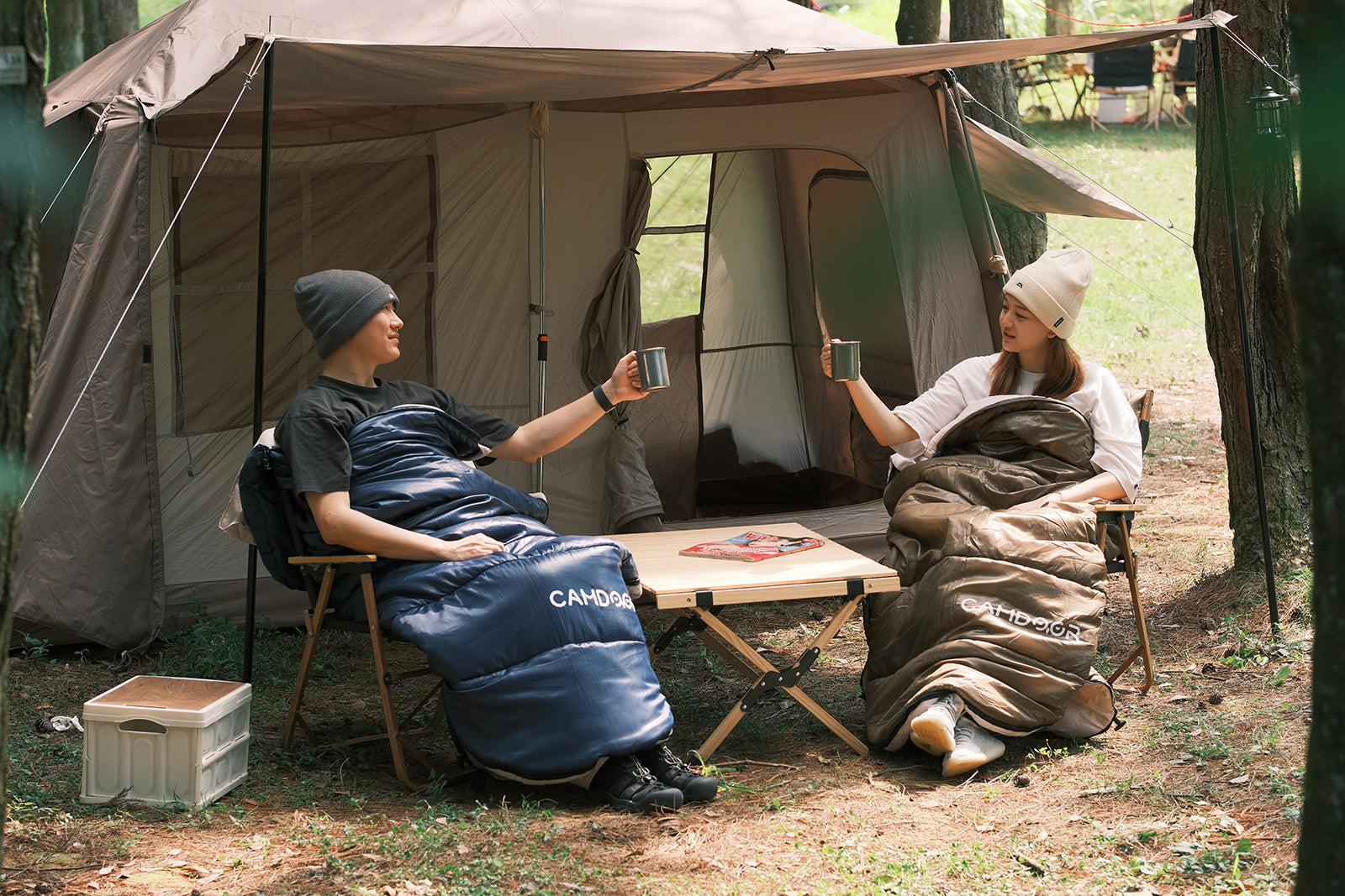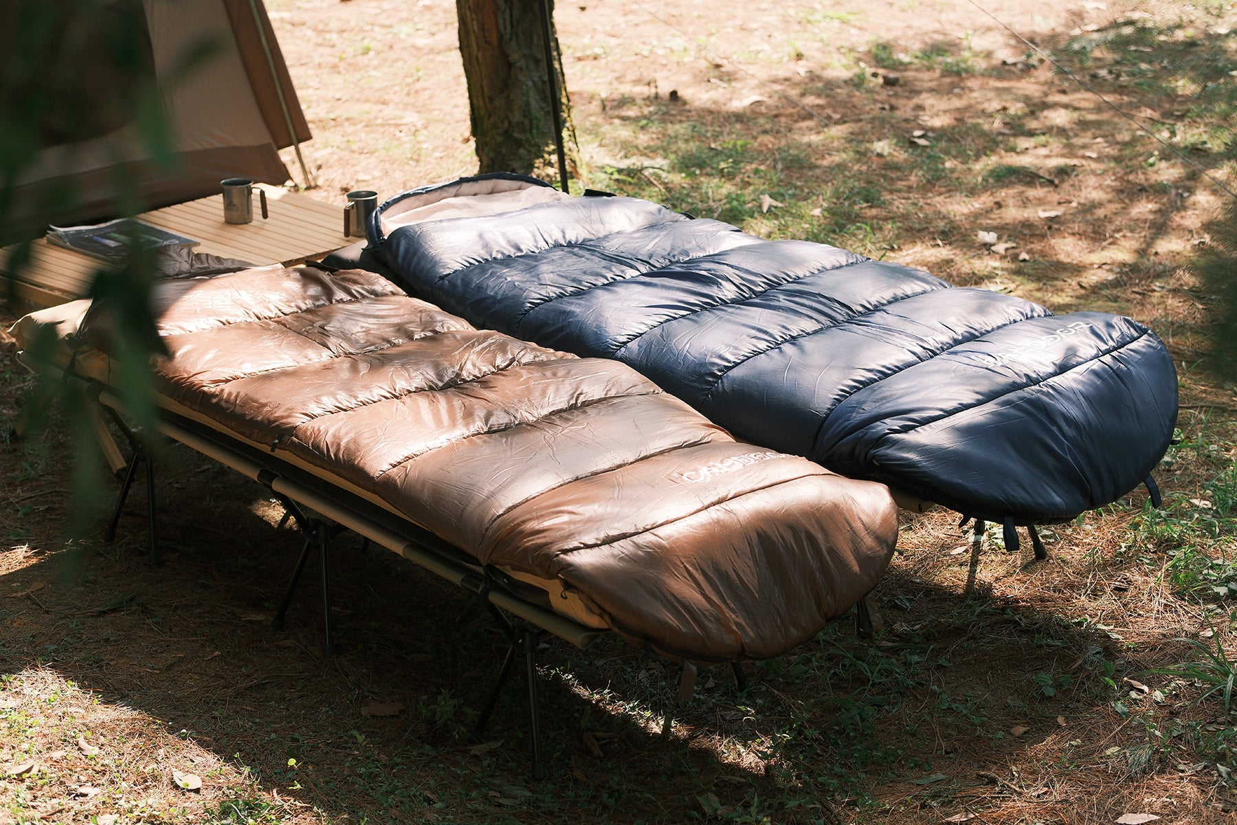 就寝中の温度調節に不可欠な、両側から開閉可能できるダブルファスナー採用している。足元だけの開閉可能、暑くなってきた時に温度調節が可能、熱がこもってムレやすい気温でも快適に過ごせる。寝袋のファスナーで自由に開閉もできるので、 完全に開けば掛け布団的に使用し、家にいてもキャンプ気分が味わえます